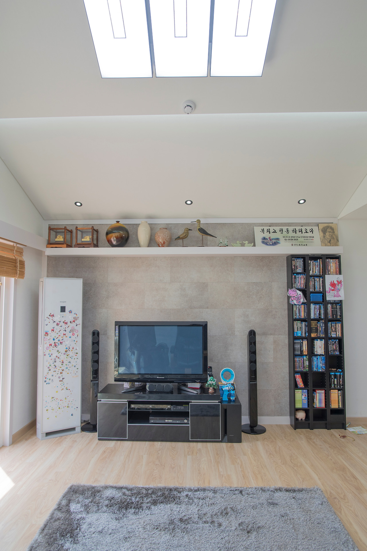 인테리어부분을 설명드릴때가 가장 어려운 것 같습니다.^^; 이번 주택의 인테리어를 보시면 최대한 화이트 계열로 진행한 것을 보실 수 있습니다. 거실은 1층 오픈천장을 적용하여 좁은 공간이지만 큰 공간적 효과를 주었으며, 타일 계열의 아트월을 시공하여 전체적인 무게감을 잡아 줄 수 있도록 하였습니다.