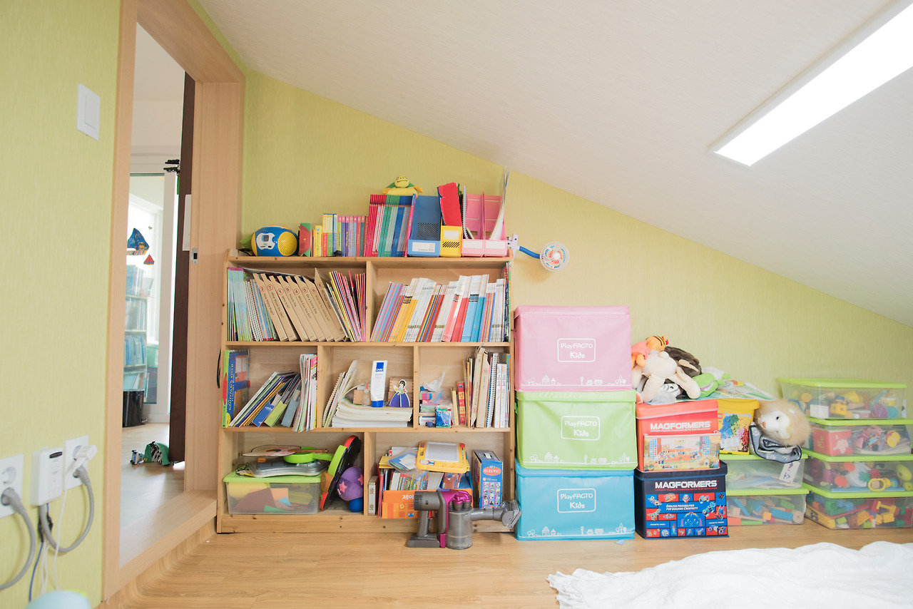 2층으로 구성하였으며, 1층은 76.47㎡(23평), 2층은 31.17㎡(10평)으로 구성하였습니다. 총 33평형 주택으로 가족들과 여가를 즐기시기에 충분한 공간으로 계획되었습니다. 또한 주방 위 공간으로 다락을 별도 설치하여 부족한 수납공간에 대한 문제를 해결할 수 있도록 하였습니다.