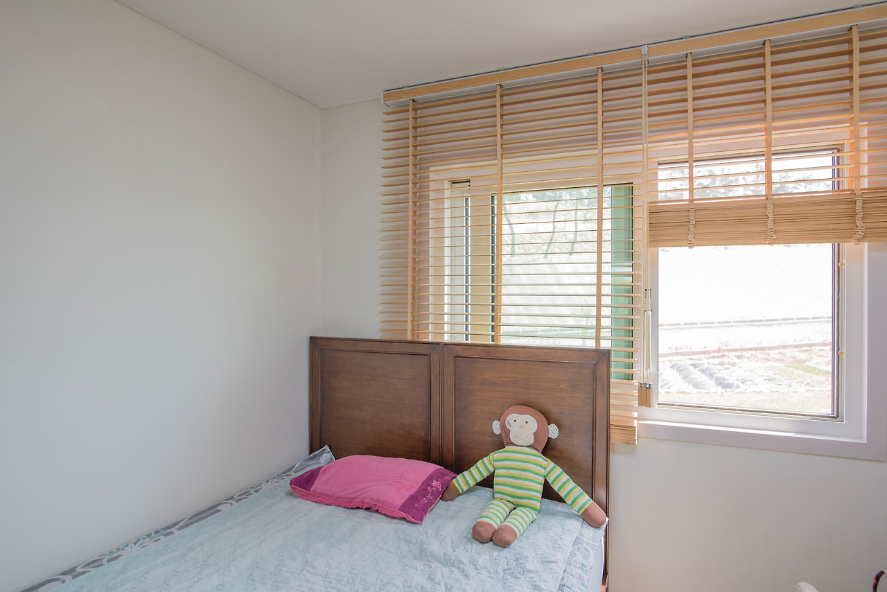방의 경우에도 가구가 색이 강한 만큼 최대한 색을 빼고자 노력하였으며, 가구와 블라인드의 느낌만을 살려 인테리어를 진행하였습니다.