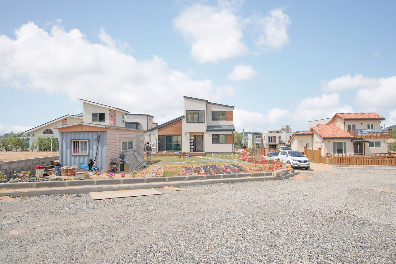 여주에 지어진 이번 주택의 경우 우여곡절이 많은 주택이었습니다. 집을 짓는다는 것이 그렇듯. 손쉽게 뚝딱 지어질 것 같지만 설계부터 인허가, 착공 및 준공까지 진행되는 반년이라는 시간동안 우리들이 생각지도 못했던 일들이 수두룩하게 일어납니다. 하지만 그러한 일들을 뚫고 완공 된 집을 보고 있노라면 그보다 더 뜻깊은 보람은 없을거라 생각합니다. 여주 단지에 지어진 이번 주택은 모던과 실용성 면에서 많은 점수를 주고 싶은 주택입니다. 외쪽지붕의 매력을 최대한 살려 가볍지 않고 실용적인 디자인을 품은 이번 주택은 여주 단지의 랜드마크적인 주택이 될 것이라 감히 생각해 봅니다.^^