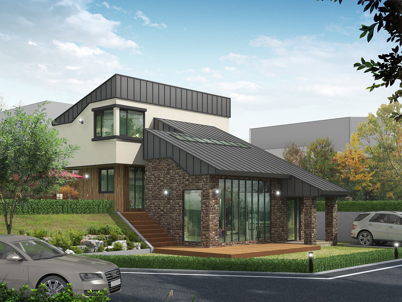 최근에 설계기획안을 보면 조금씩 비슷하다라는 느낌을 받으시죠? ^^; 그 이유가 고벽돌이라는 테마와 모던이라는 테마, 그리고 징크를 사용하겠다는 요소를 미리 설정해 놓고 기획안을 풀어내서 그렇답니다. 이렇듯 외관의 포인트와 전체적인 느낌만 통일해도 완벽히 다른 평면일지라도 비슷한 느낌의 집을 만들어 낼 수 있답니다.^^