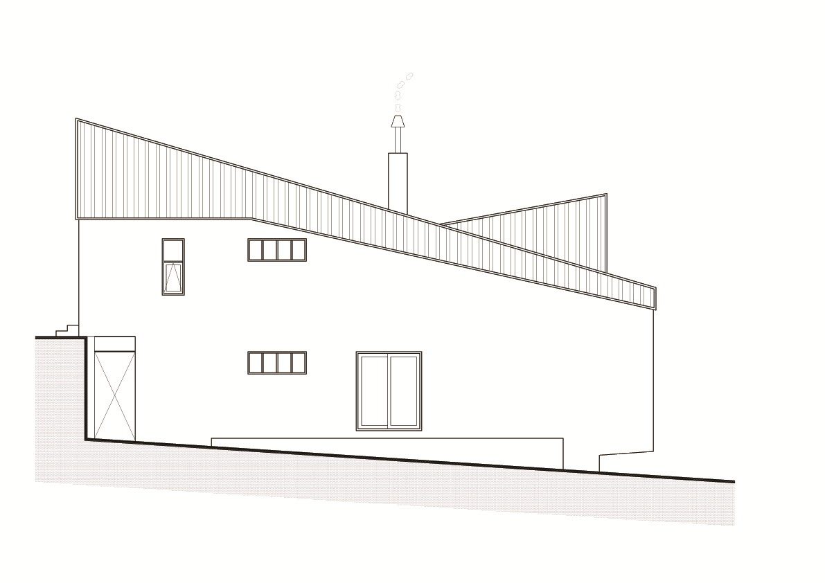 일반적으로 목조공법에는 물구배로 인해 경사도가 15도 이상 꼭 있어야 합니다. 철근콘크리트공법의 경우 누수에 대한 위험이 상대적으로 적어 평지붕으로 마감해도 되지만 저는 개인적으로 아무리 철근콘크리트라 할지라도 물 구배를 주는 것을 기본으로 합니다.^^ 이번 주택의 경우 도로사선이라는 제한적인 요소를 일부러 넣어주었으며, 전면부로 지붕 경사도가 있는 것은 도로사선에 따라 건축법적 제약조건을 일부러 적용시켜 놓은 것입니다.^^
