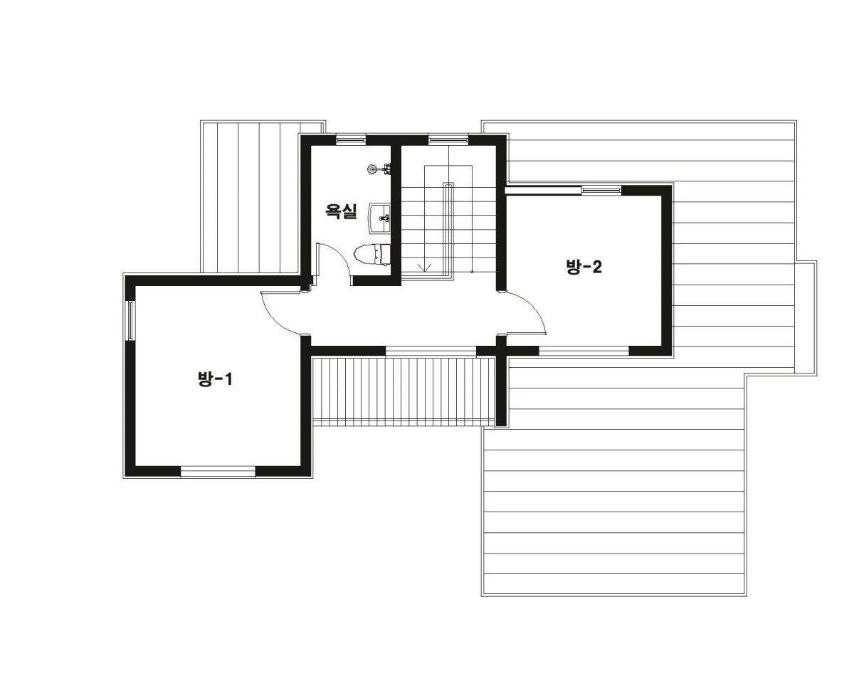 목조주택에 발코니를 설치할 때에는 필수적으로 지붕을 씌워줘야 합니다. 직사광선을 피하셔야 하며, 발코니 위에 지붕을 시공하여 혹시 모를 누수에 대비하셔야 합니다. 간혹 지붕이 없는 것이 이쁘다고 무조건 해 달라고 하시는 분들이 계신데 이는 위험한 행동입니다. ^^;
