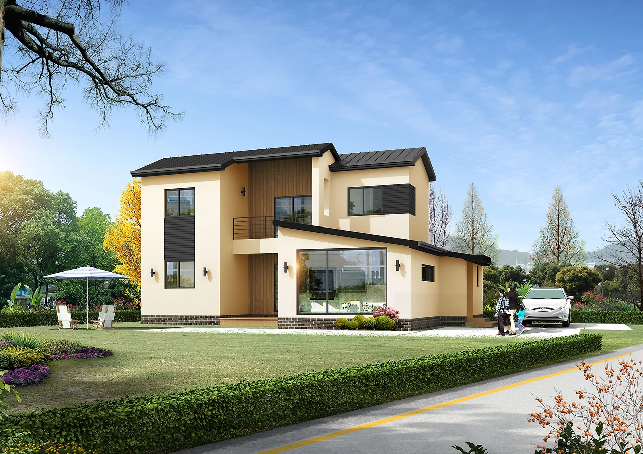 평범함 박스형 디자인을 탈피하고 지붕의 경사도와 전면부 포인트의 변화만으로도 다른 느낌의 주택을 디자인할 수 있었습니다.