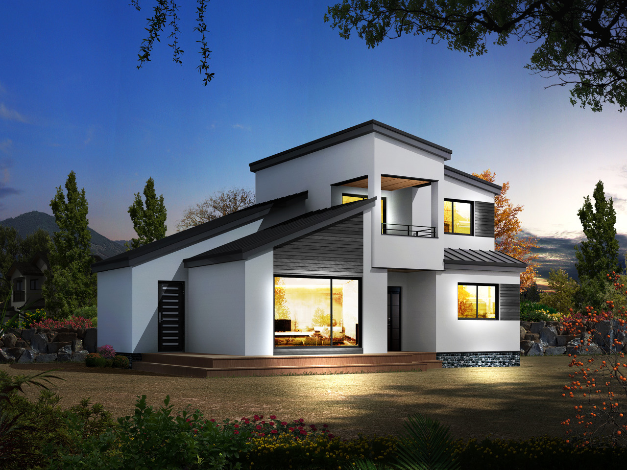이번 모델처럼 외쪽지붕의 경사면의 방향만 달리해도 전혀 다른 느낌의 외관을 느낄 수 있으며, 클래식이 아닌 모던 스타일의 군더더기 없는 집을 탄생시킬 수 있습니다.