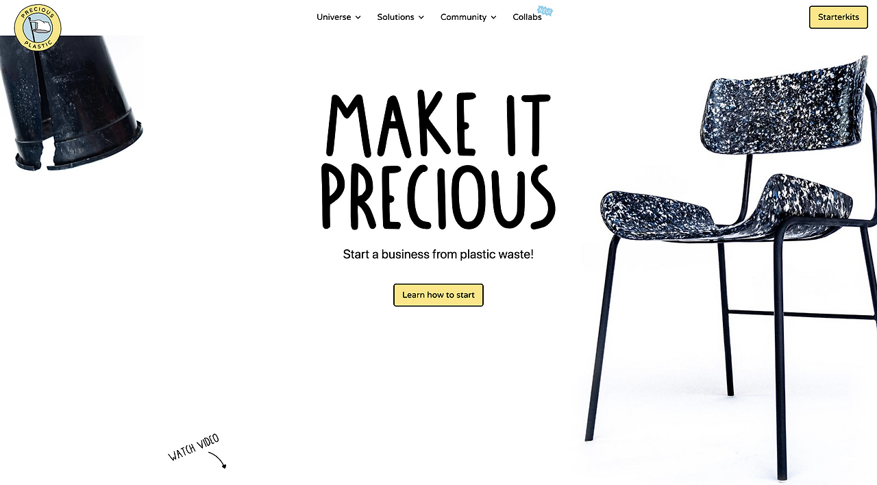 플라스틱을 직접 모아 재활용하자는 운동을 하는 글로벌 커뮤니티예요. 재활용할 수 있는데, 재활용되지 않는 플라스틱이 많으니까 이 문제를 해결해보려고 모인 것이죠. 프레셔스 플라스틱은 지역 커뮤니티에서 플라스틱을 수거하고 가공하여 플라스틱 재활용 제품을 만드는 전 과정에 대한 노하우를 전하고 있어요.