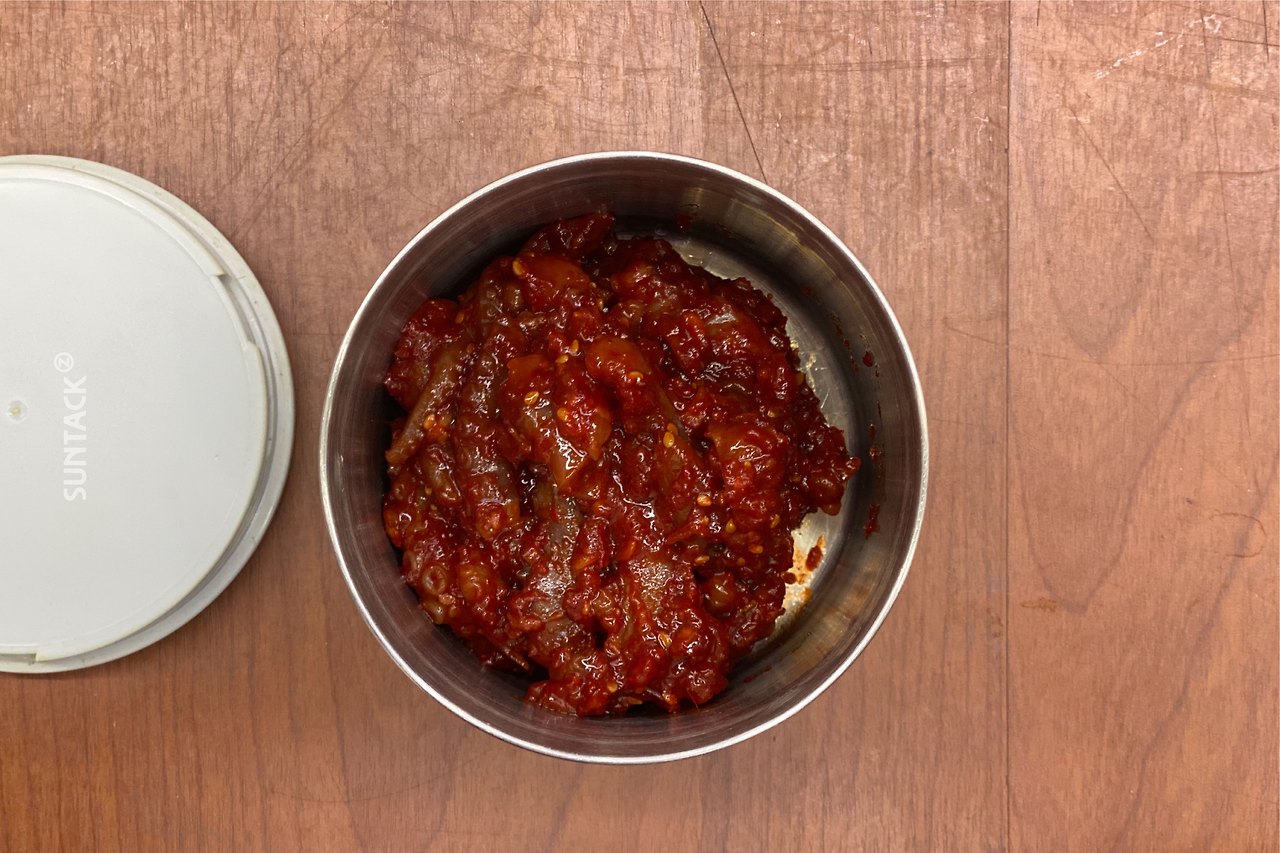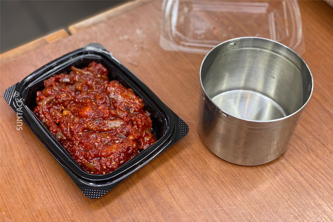 반찬가게를 방문한다면 포장하지 않은 반찬을 개인 용기에 담아달라고 미리 말하는 게 좋다. 미리 말하지 않으면 반찬가게 이모님이 플라스틱 반찬 용기를 열어 개인 용기 안에 옮겨줄 것이다. 플라스틱 용기 대신 스테인리스 용기에 젓갈을 담으니 젓갈이 더 맛있어 보인다는 것 하나 건졌다.
