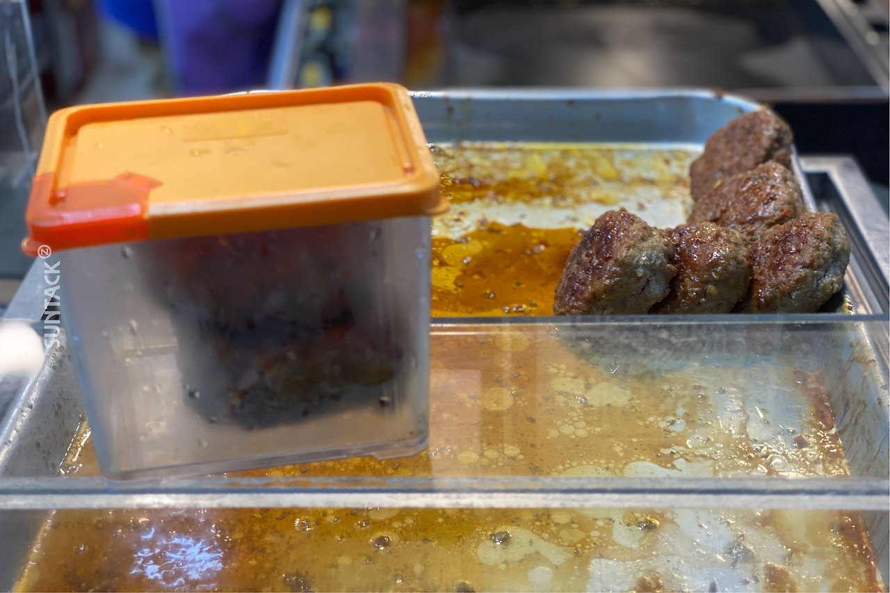 고기 없이 못 사는 나는 떡갈비 가게를 지나칠 수 없었다. 남은 개인 용기 사이즈가 작아 떡갈비가 담기지 않을 거라 생각했다. 사장님께 이 용기에 떡갈비를 담을 수 있겠냐고 물어보자 당연히 담을 수 있다고 대답하셨다. 내 걱정과 달리 떡갈비가 용기 안에 들어갔다. 용기를 담을 비닐봉지가 필요하냐고 물으셔서 장바구니를 가져와 괜찮다고 말했다.
