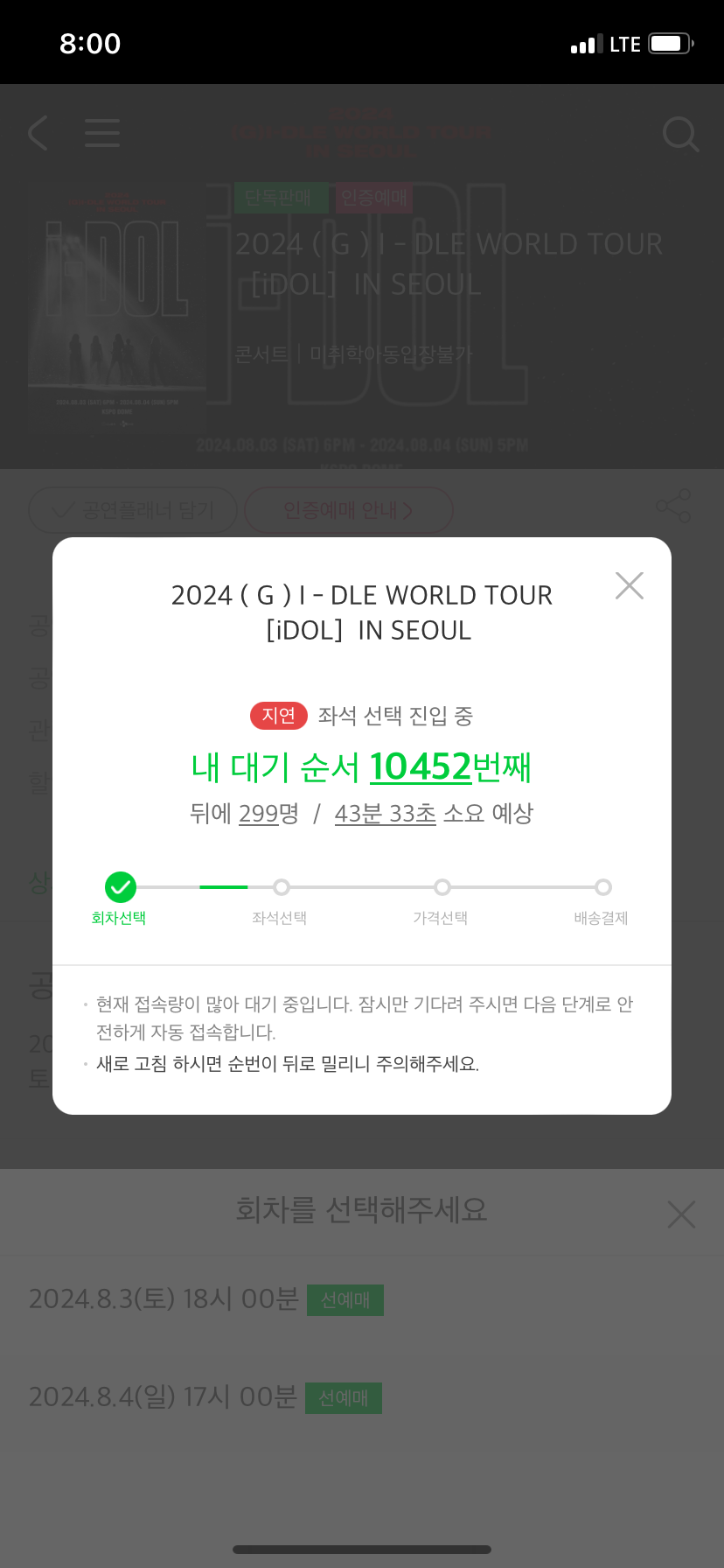티켓팅은 저녁 8시였지만 아침 8시부터 긴장이 몰려왔다.