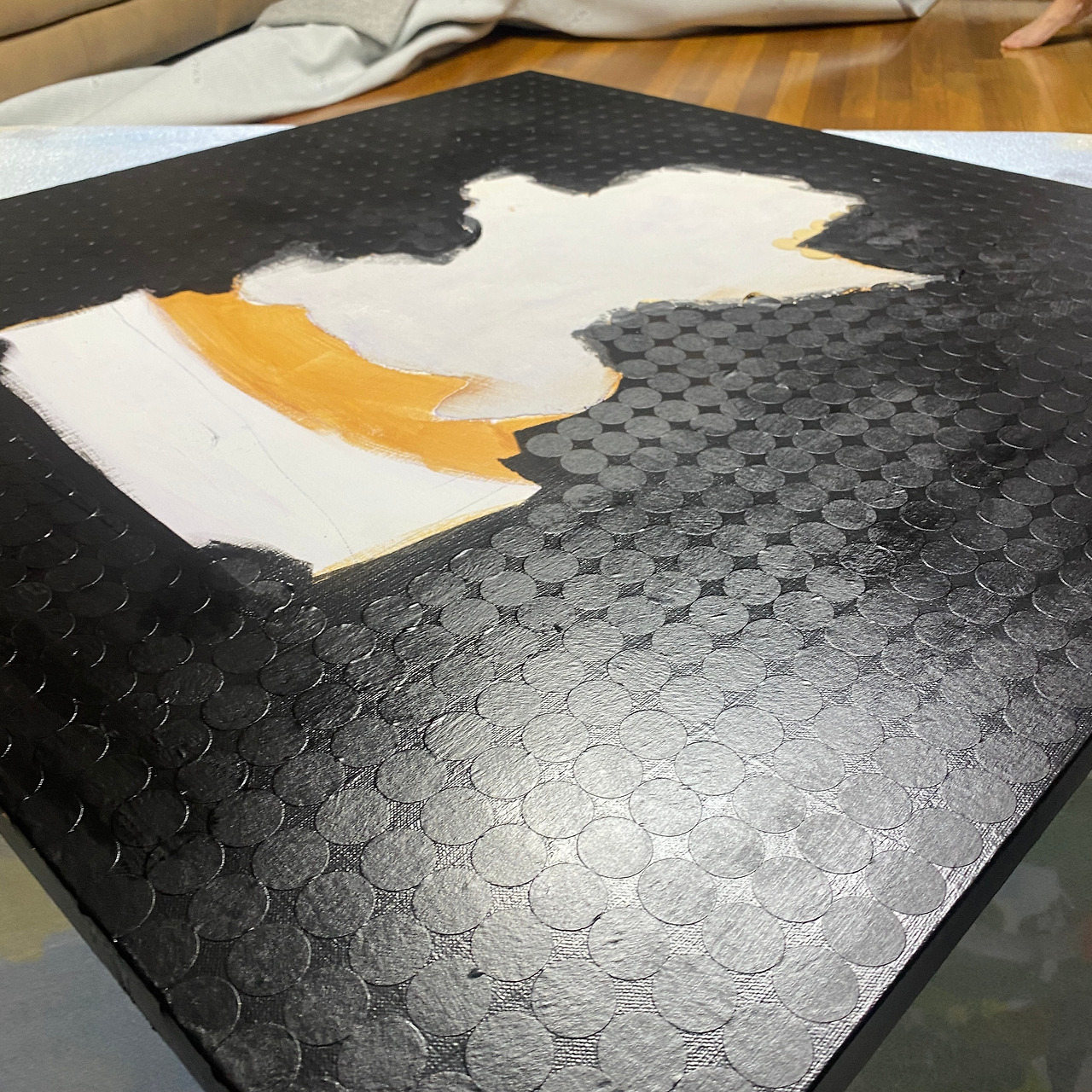 다시 까만색 아크릴 물감으로 캔버스 전체를 다 덮어버리고