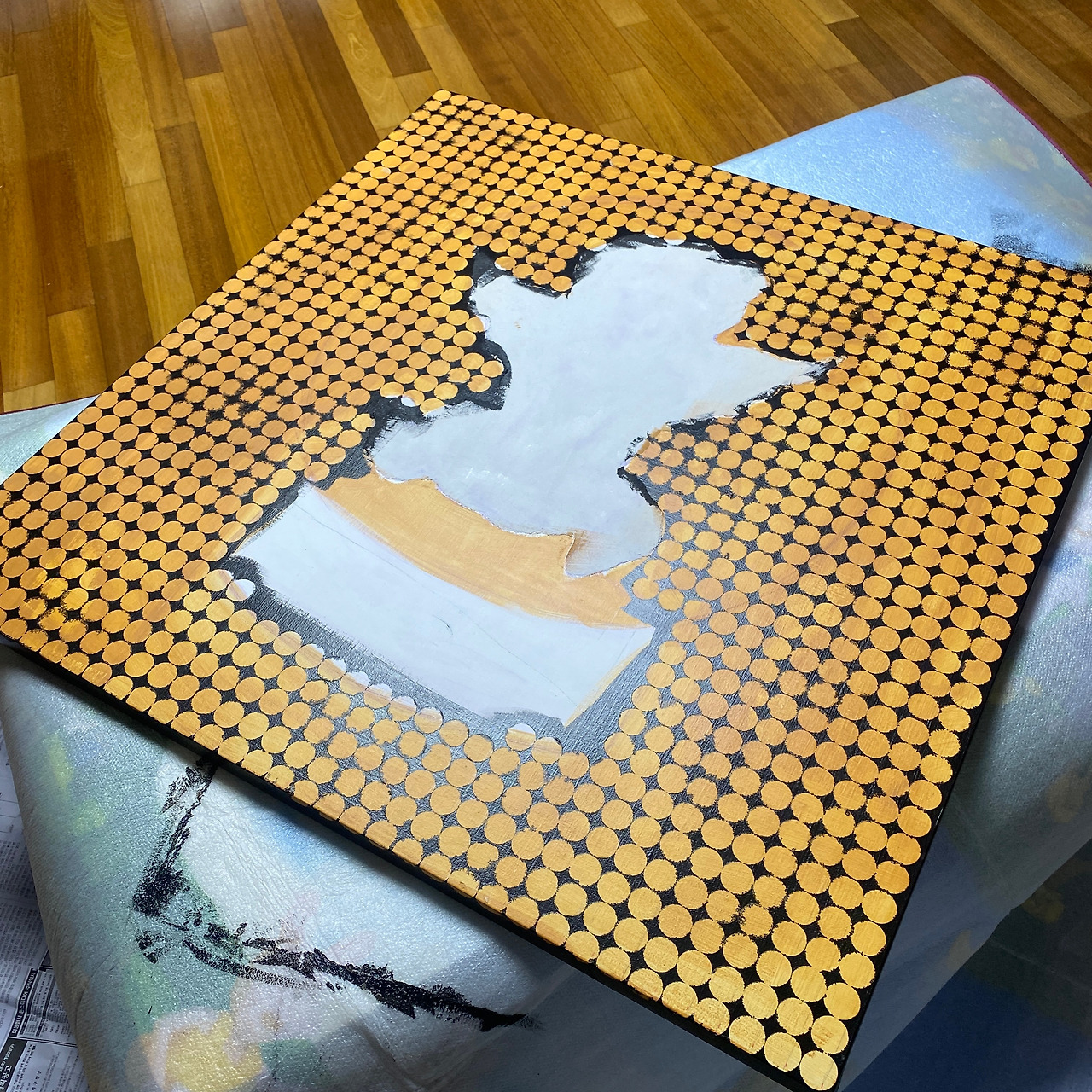 일단 밝은 색 아크릴 물감으로 밑색을 깔고