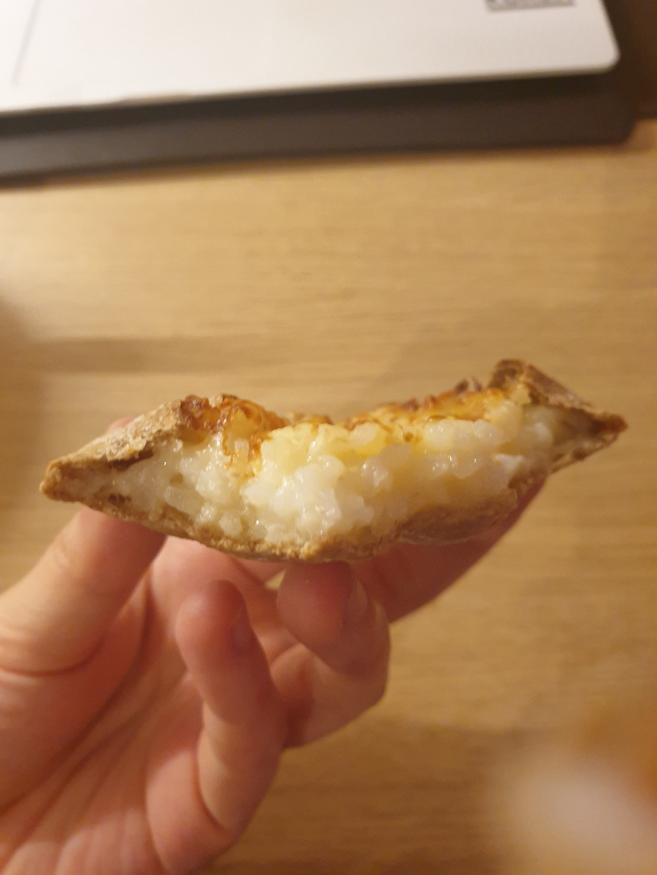 한입 베어 문 단면을 보자면, 이렇게 쌀이 포슬포슬하게 들어있다. 사실 쌀인지, 감자인지 모를 정도로 쌀의 식감을 느끼긴 어렵다. 단단한 호밀빵과 부드러운 속재료들의 조합은 우리가 상상할 수 있는 맛 같기도 하다.
