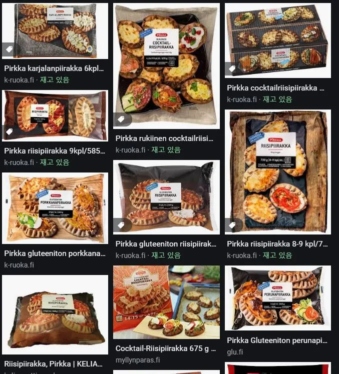 냉동, 냉장식품으로 나오는 까르얄란 삐라까. 칵테일용, 글루텐프리용 등 다양하다