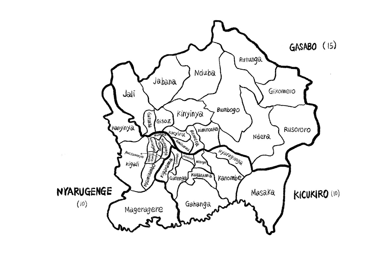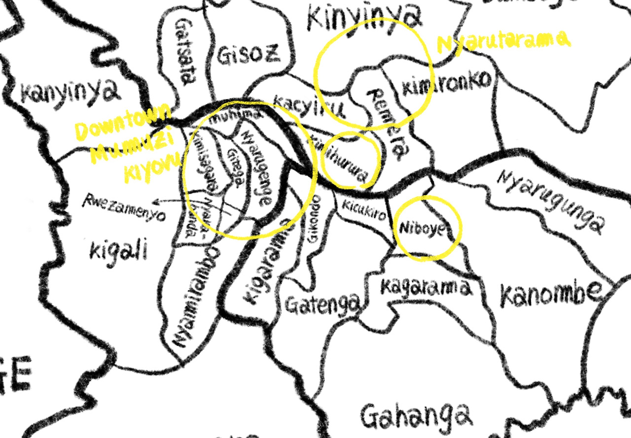 참 이상한 일이다. 한국에 오래 살 때는 지리에 큰 관심이 없었는데, 해외를 나와 살면 내가 어디에 있는지, 그 지역은 전체로 봤을 때 어떤 의미가 있는 곳인지 알고 싶어 진다. 르완다에 와서 내가 제일 처음 했던 것은 르완다 전역의 지도와 키갈리의 지역 구분도를 그리는 것이었다.
