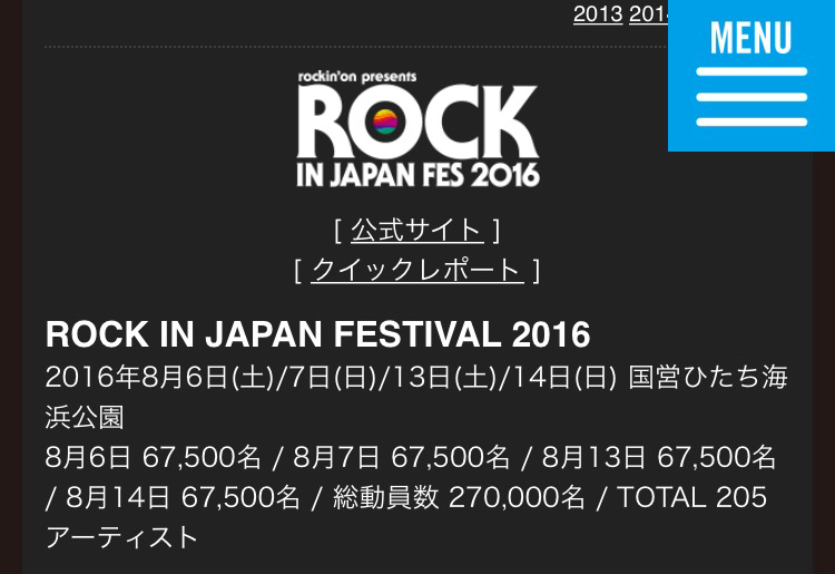 사실 다른 로컬 페스티벌도 그렇지만, 특히 해당 공연 주관자인 출판사 < Rockin' on > 개최 페스티벌의 출연진은 한마디로 '그 밥에 그 나물'이다. 기본적으로 < Rockin' on >이라는 곳이 평론가들로 이루어진 하나의 프로모션 집단에 가깝기 때문이다. 미래가 유망하다고 생각하는 아티스트들을 발굴해 자사잡지인 < Rockin' on Japan >이나 < Cut >에 지속적으로 인터뷰 및 앨범 리뷰를 실어주며 인지도를 높이고, 자사가 주최하는 재팬 잼, 록 인 재팬, 카운트다운 재팬과 같은 페스티벌에 내보내 지속적으로 성장시키는 매커니즘이기 때문에 뜬금 없는 아티스트가 출연할 확률은 극히 드물다. (이게 다 잡지가 잘 팔리고 공연 티켓이 잘 나가니까 가능한 일...)