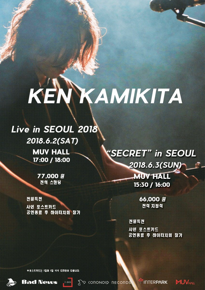 카미키타 켄의 내한공연이 작년에 이어 2 DAYS!