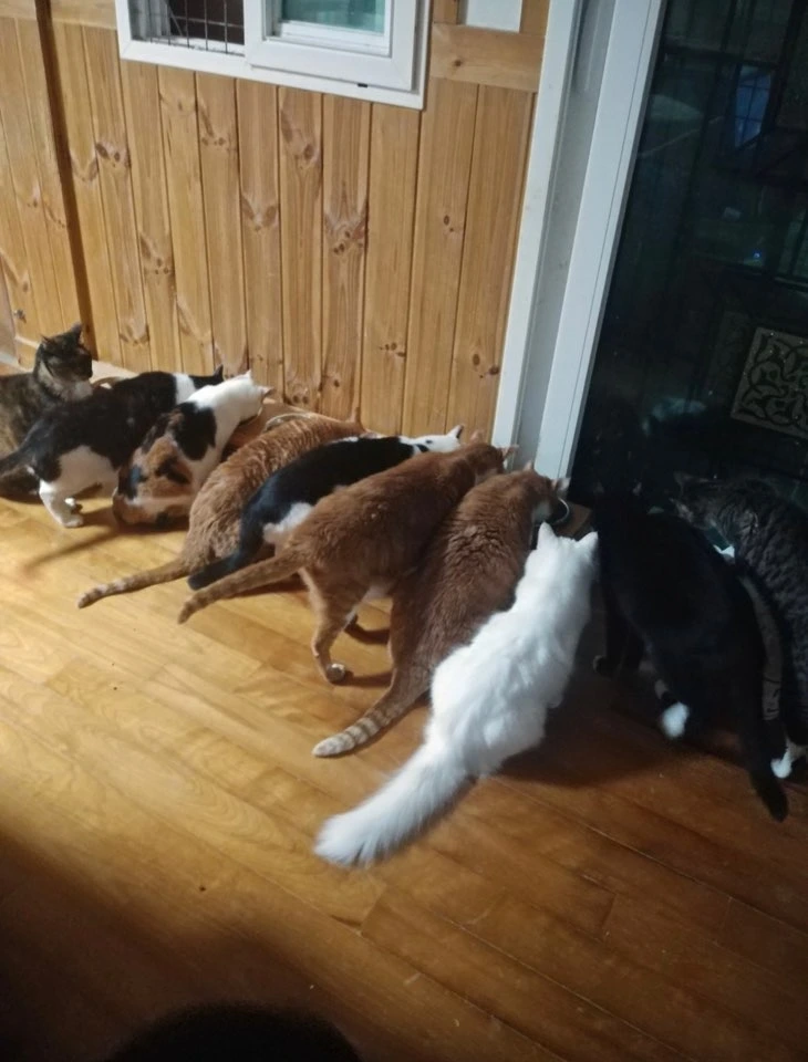 저기에는 65마리의 고양이들이 있데