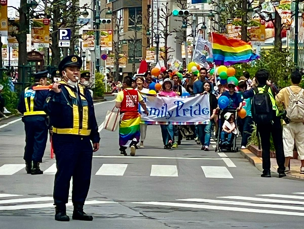 퍼레이드 행렬은 요요기 공원에서 출발해, 시부야->하라주쿠를 거쳐 다시 공원으로 돌아오는 코스였다. 일본에서 사람 제일 많은 곳을 관통하는 코스라니, 멋있고, 부럽고, 상상만으로도 짜릿했다. 전날 퍼레이드 행렬에는 들어가지 않기로 했기 때문에 우리는 파르코백화점 앞에서 구경하기로 했다.