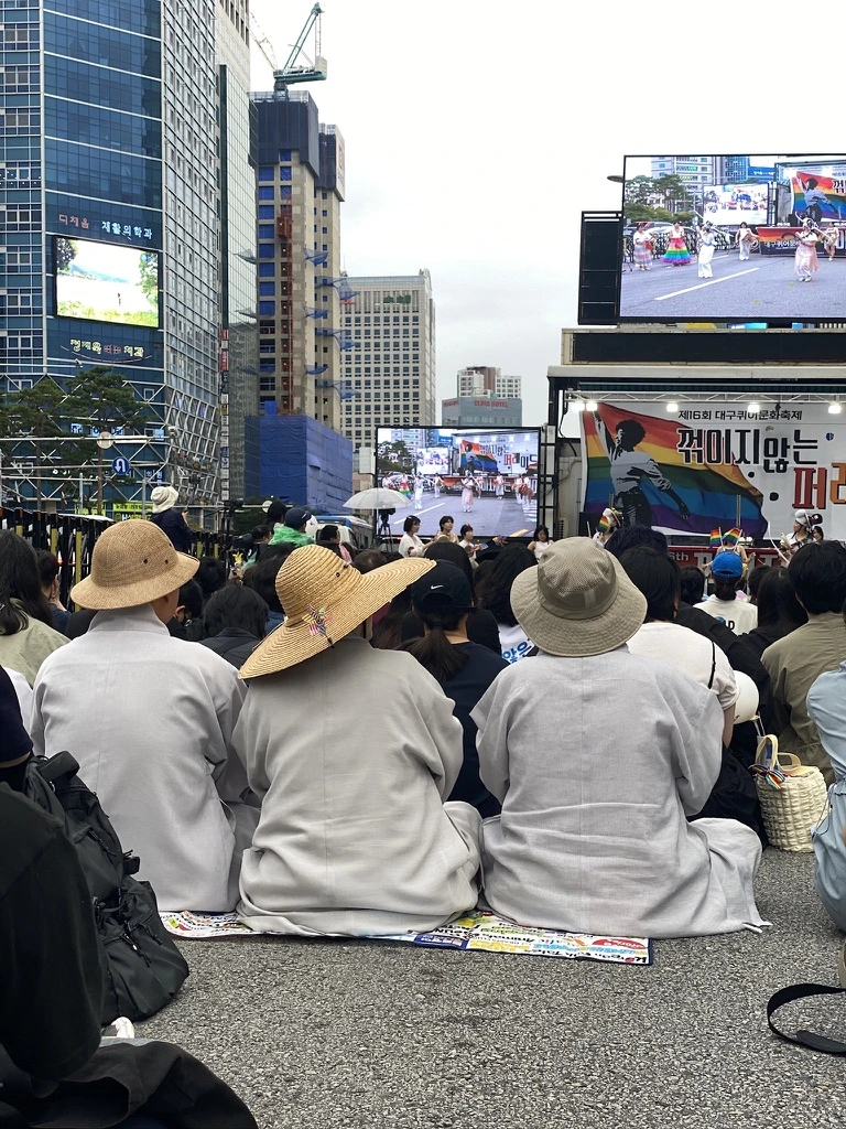 9월. 처음으로 대구 퀴어퍼레이드에 참여했다. 계기는 서울 퀴퍼에서의 만남. 서울 퀴퍼 행사장을 돌아다니다 너무 예쁜 티셔츠를 발견해서 구입했는데, 그게 대구 퀴퍼 티셔츠였다. 판매하시던 분이 퀴퍼위원장님이었는데, 평소 그분의 전설 같은 이야기를 들었던 터라 존경하는 마음에, "대구 퀴퍼도 오세요!"라는 말을 듣자마자 "네!" 해버린 거다. 또 대구 퀴퍼 측이 작년에 홍준표의 방해로 고난을 겪기도 했고, 그걸 극복해 내고 법정 투쟁에서 승소까지 하는 등 축하할 일도 있어서 가기로 했다.
