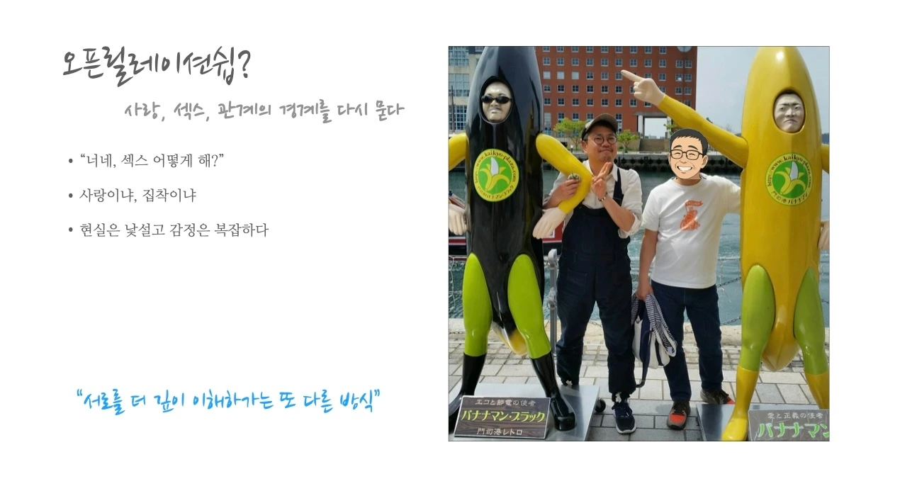 20년을 함께하다 보니 성적인 부분에서 변화가 생겼습니다. 처음엔 폐쇄적인 커플이었지만, 서로의 성욕 차이, 건강 문제 등으로 오픈릴레이션쉽을 탐색하게 됐어요.