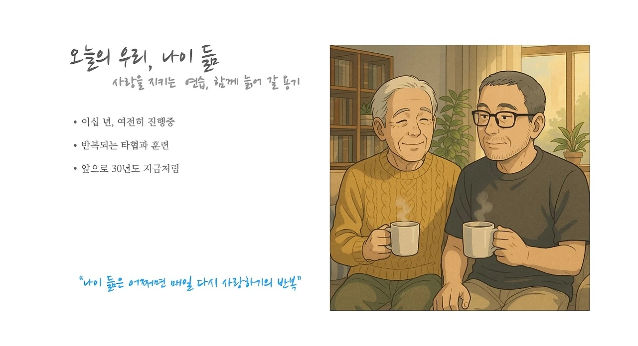 100세 시대지만, 게이 커플의 미래는 여전히 불확실합니다. 그렇기 때문에 우리는 삶의 작은 기록들을 남기고, 관계를 증명하며, 함께 나이 들어가는 법을 배우고 있습니다.
