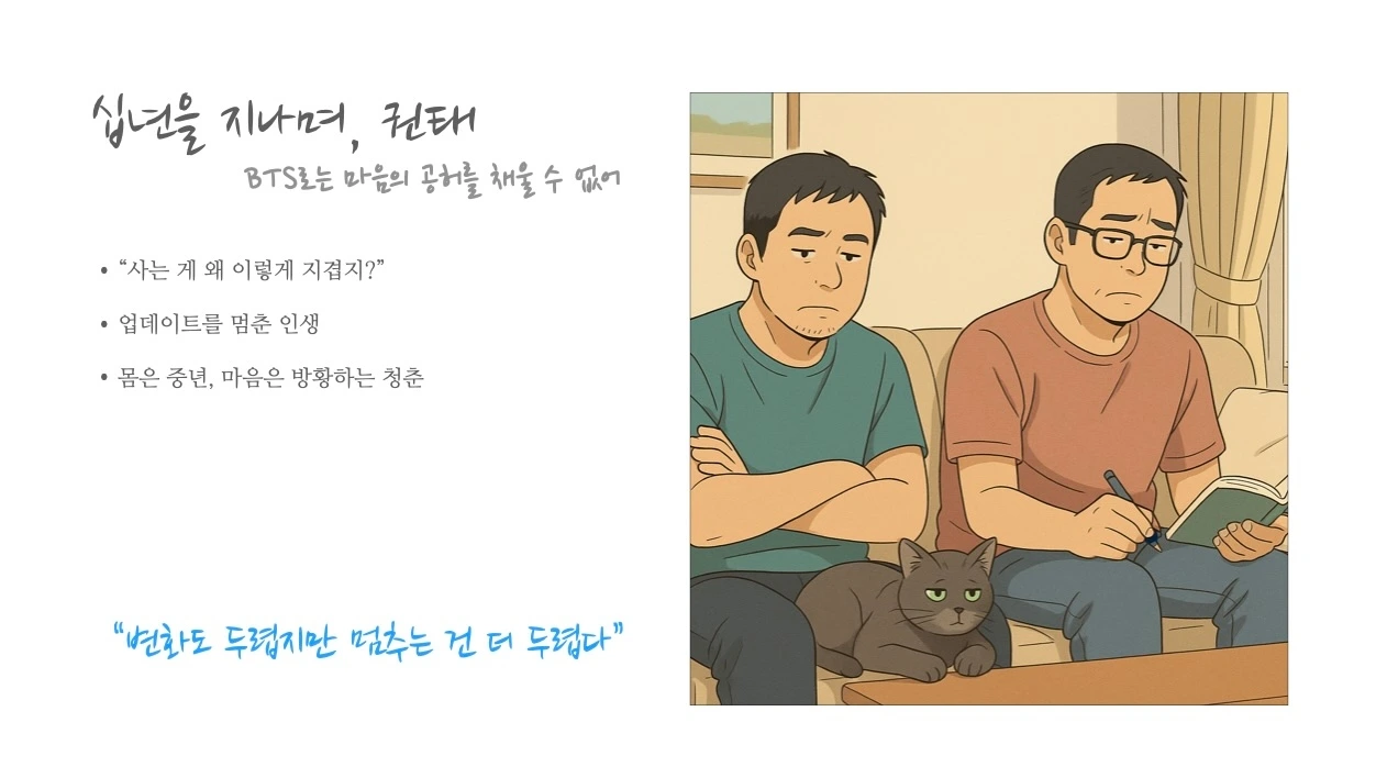10년이 지나고 찾아온 건 권태였습니다. 몸도 마음도 지치고, 여행 사진밖에 남은 게 없더라고요. 방탄 팬질, 일본 여행… 어느 순간 게이스러움이 사라진 느낌이었습니다.