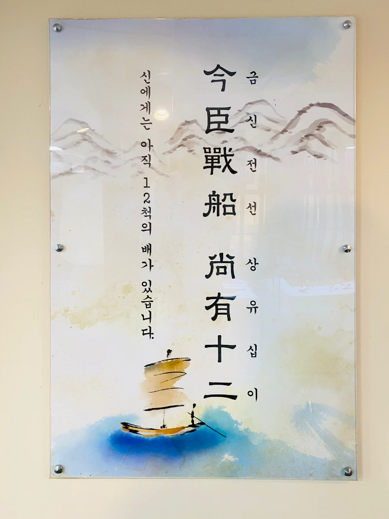 폭우를 피해 일단 판옥선 전시관으로 몸을 피했다. 당시 상황을 재현한 모형이 즐비하고, 벽면에는 이순신 장군의 말이 새겨져 있었다.