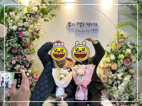 약속 시간보다 조금 일찍 도착해 민원실에 앉아 있는데, 홍예당 전인과 모리, 비타가 꽃다발을 들고 들어왔다. 이어 부산대 법학전문대학원 오정진 교수님, 그리고 동성혼 법제화에 관심이 많은 부산 로펌 소속 변호사들도 모습을 보였다. 모리만 올 줄 알았는데, 예상치 않게 많은 축하객이 모였다.