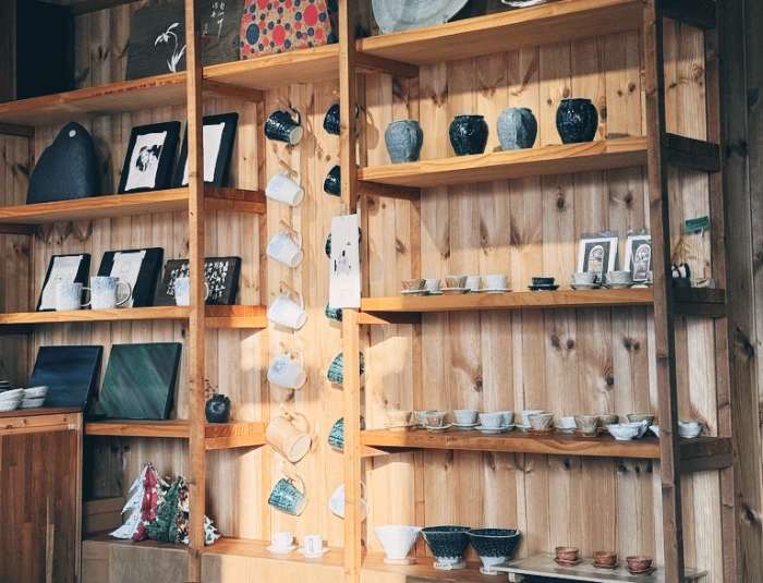 숙소로 돌아오는 길에 ‘그릇 굽는 집 카페’에 들렀다. 차를 마시며 이 글을 쓰고 있다. 그런데 진열된 그릇들이 유난히 예쁘다. 충동구매 욕구가 슬며시 고개를 든다.