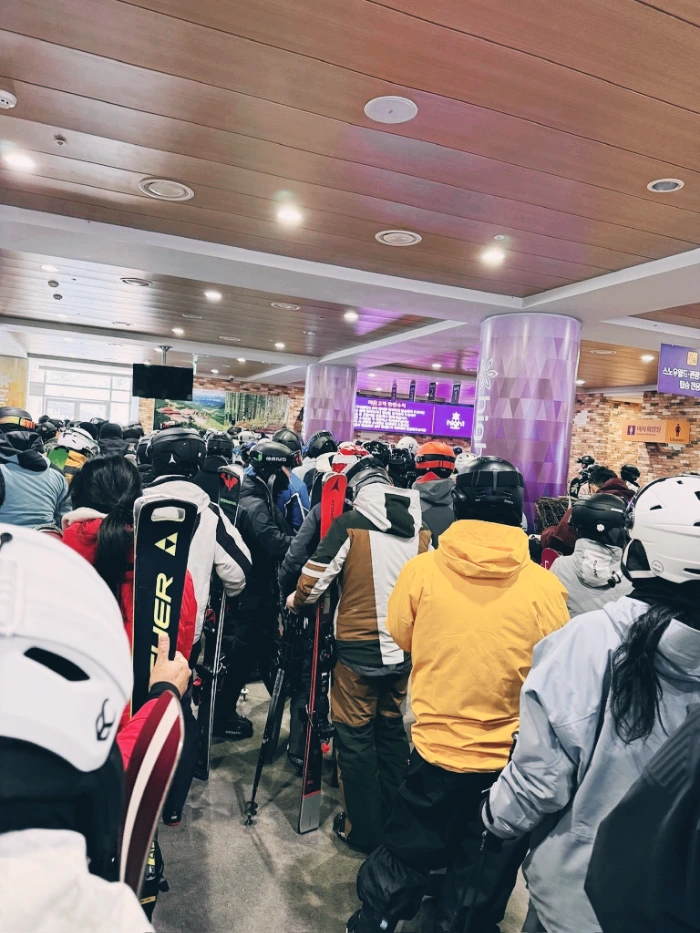 평일엔 한산하던 하이원이 사람들로 가득했다. 스키를 사랑하는 사람으로서는 반가운 풍경이지만, 리프트 줄에 서 있으니 마음이 마냥 너그럽지는 않았다.