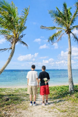 이성애자 부부들이 결혼 후 몇십 년이 지나 리마인드 웨딩을 하듯이 우리도 그런 기념식을 해보면 재미있겠다고 생각했다. 야자수 아래에서 멋진 옷을 입고 사진도 몇 장 남기고 말이다.