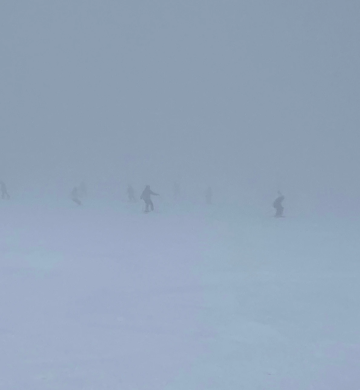 위는 여전히 구름에 가려서 코스가 보이지 않았고, 그 상태로 범프를 피해 다녀야 하니 삽시간에 '나 지금 여기서 뭐 하니...' 상태가 되어버렸다. 지난번과 마찬가지로 대혼돈의 눈세상 탐험이 되어버렸다.