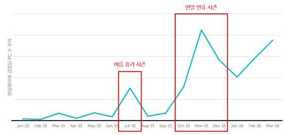 <1월부터 다음 해 3월까지 15개월간 랜섬웨어 감염 추이. 출처 : 안랩>