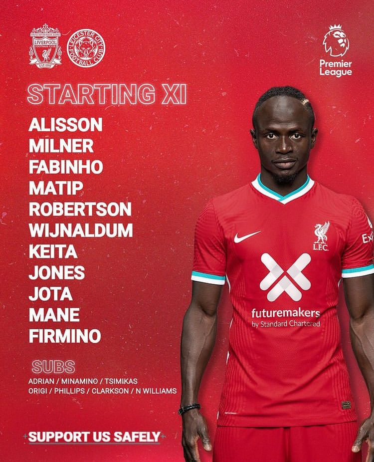 오늘 경기에서는 아놀드-헨더슨이 결장하면서 오른쪽 측면 공격이 다소 부진했으나, 로버트슨과 마네가 왼쪽 측면을 지배하면서 오른쪽 측면 공격의 부진을 상쇄시켰다. 특히, 마네와 포파나(레스터 오른쪽 풀백)의 대결은 거의 뭐 부숴버렸다고 해도 무방할 정도로 마네의 압도적인 완승이었다.