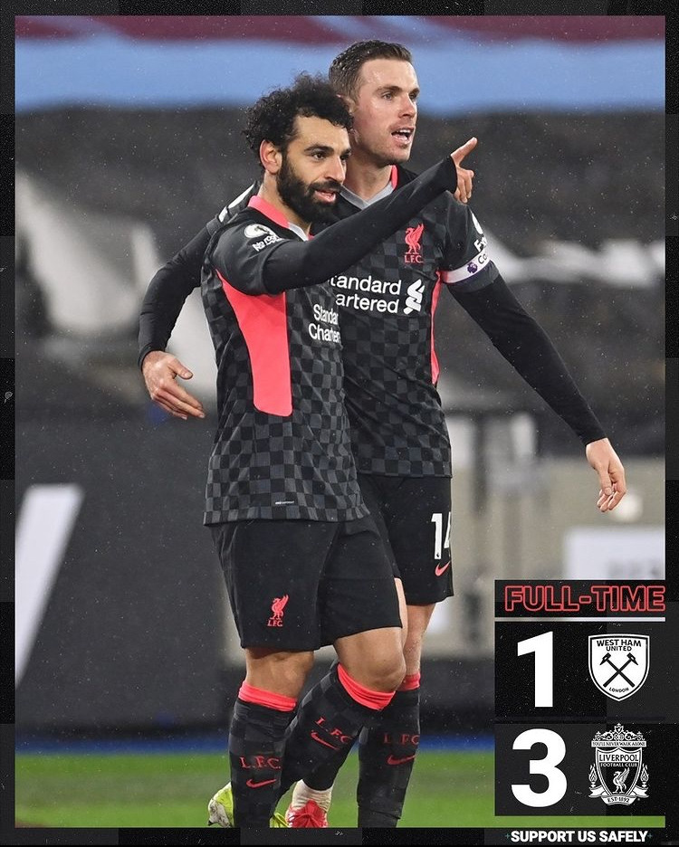 웨스트햄은 실점 직후 교체를 단행하고, 수비 라인을 올리는 등 분위기를 바꾸고자 했다. 제공권에 강점이 있는 만큼, 코너킥 상황 같은 세트피스를 만들어 동점골을 노리고자 했다. 그러나, 후반 67분, 웨스트햄의 코너킥을 가로챈 리버풀이 빠른 역습을 전개하며 추가골을 터뜨렸다. 아놀드가 왼쪽 측면을 가로질러 달리는 샤키리에게 롱패스를 했고, 샤키리도 전방에 있는 살라에게 논스톱으로 롱패스를 했다. 살라는 오른발 기가 막히게 트래핑한 후, 왼발로 가볍게 골문 안으로 차 넣었다. 정말이지 감탄사를 연발할 정도로, 가히 역습 스페셜에서나 나올만한 멋진 골장면이었다.