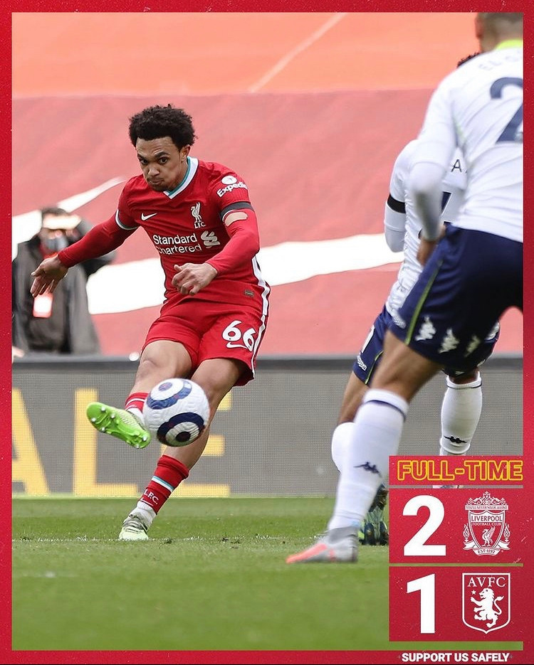 드디어! 2021년 홈경기 첫 승을 거두었다. 2020년 12월 17일에 열렸던 토트넘과의 경기 이후 약 116일 만에 거둔 성과이자 무려 9경기 만에 달성한 기록이다. 심지어 이 경기 전까지만 해도 리버풀은 홈 6연패를 기록 중이었다. 참으로 오랜 고비 끝에 얻은 값진 승리였다.