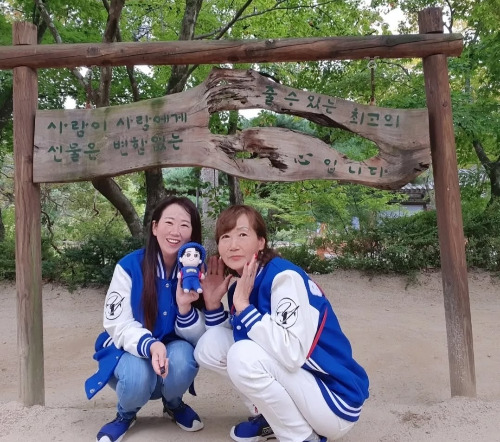35년이 지나서야 본격적인 추억여행을 시작했다. 돝섬 유원지에 도착해서야 알게 되었다. 우리 모녀 눈에 들어온 ‘황금돼지 조각상’. ‘돝’은 황금 돼지로 ‘돝섬’은 황금 돼지섬이었다. ‘우리 영탁님도 돼지띠, 내가 행복했던 장소도 돼지섬!’ 너무 좋았다. 얼른 가방에서 영탁 솜인형을 꺼내어 황금돼지조각상에 올려놓고 기념사진을 찍었다.