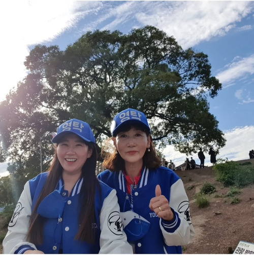 여유있게 창원 ‘동부마을’로 향했다. 드라마 ‘이상한 변호사 우영우’에서 주인공 모녀가 바람을 만끽했던 팽나무가 있는 곳. 언제나 그랬듯 우리 모녀는 영탁 이름이 새겨진 점퍼에 모자를 쓰고 갔다. 팽나무에 다다르자 우리 모녀에게 관광객들이 한 마디씩 건넸다.