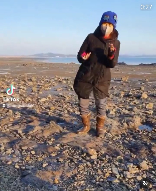 한 번 시동 걸린 엄마는 어디서든 챌린지를 하고 싶어 했다. 마침 물도 빠졌고, 평일이라 관광객도 별로 없었고. 타이밍이 딱! 이었다. 최대한 바닥이 평평한 곳을 찾았다. 춤은 엄마가 추는 건데 내가 더 바빴다.