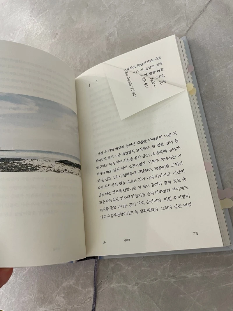 ‘어떤 계절’ 하면 떠오르는 냄새, 음악, 장소, 추억 등이 있다. 이제 ‘겨울’하면 올해 겨울을 함께 시작한 <겨울의 언어>도 함께 떠올릴 테다. 오랜만에 서점에서 구입해 읽은 책이라 마음껏 책 귀퉁이를 접었고, 붙였던 인덱스 스티커를 떼지 않았다.