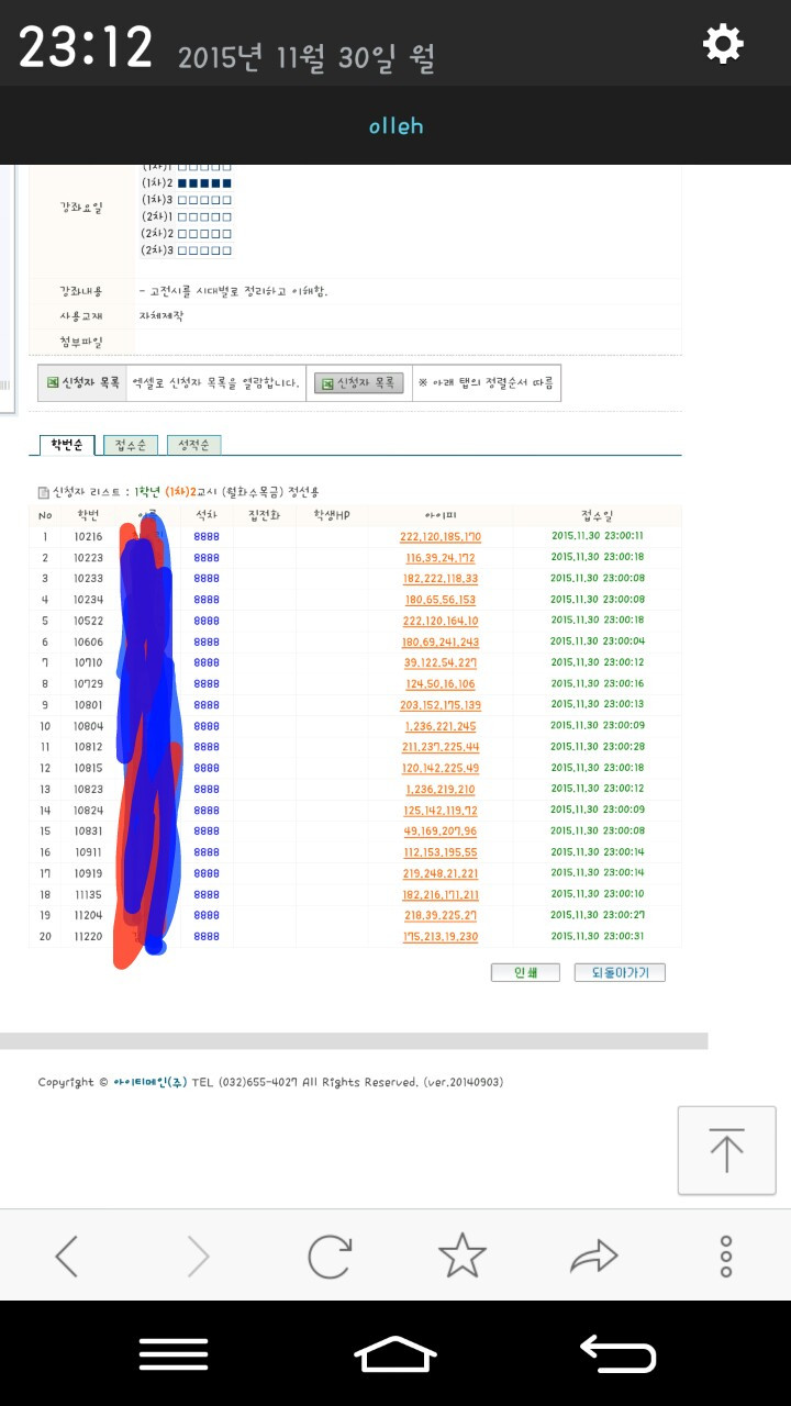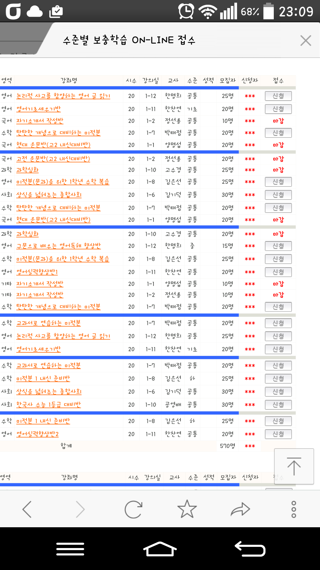 겨울방학 보충 수강신청이 있던 오늘