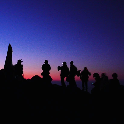 5시 45분. 나보다 먼저 올라온 사람들이 대청봉 정상석 앞에서 사진을 찍고 있었다. 아래쪽부터 붉게 올라오는 동쪽 하늘을 배경으로 사람들이 서 있는 모습이 한 폭의 그림 같았다.