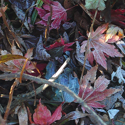 새벽엔 바람도 없었고 오늘은 산에서 맞이한 가장 따뜻한 아침이었지만, 한계령으로 향하는 길에 만난 낙엽들은 서리를 맞아 잔뜩 얼어있었다.