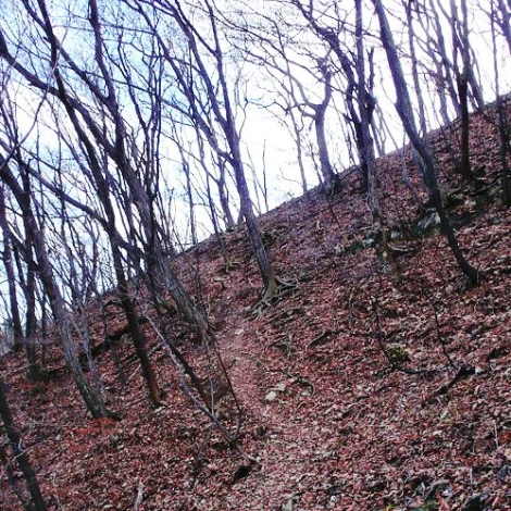 단풍도 잎새도 없이 마른가지만 펼치고 있는 나무 사이를 묵묵히 걸었다. 경사가 심한 능선을 따라 비스듬히 자라는 나무들이 신기하다.