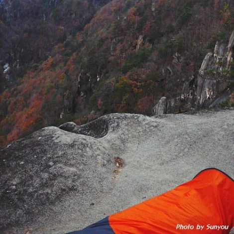 나는 신선바위 위에 텐트를 치고 등산로와 인접한 바위의 뿌리 쪽에 등을 딱 붙이고 잠이 청했다. 잠을 자는 동안 등만 잘 붙여둔다면 저 아래 낭떠러지로 떨어질 일은 없을 것 같았다.