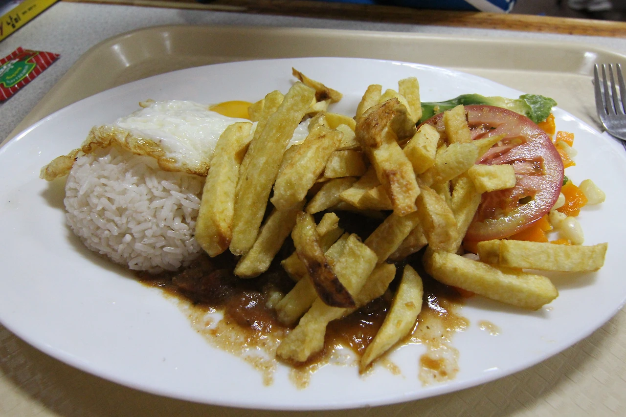 에콰도르에서 기억에 남는 또 다른 음식은 '빠빠'다. 밥과 감자튀김, 계란 프라이가 한 끼 식사다. 감자튀김을 햄버거가 아닌 쌀밥과 함께 먹다니! 빠빠도 1~2달러 밖에 안 하는 간단한 식사다. 주로 학생들이 사 먹는다.