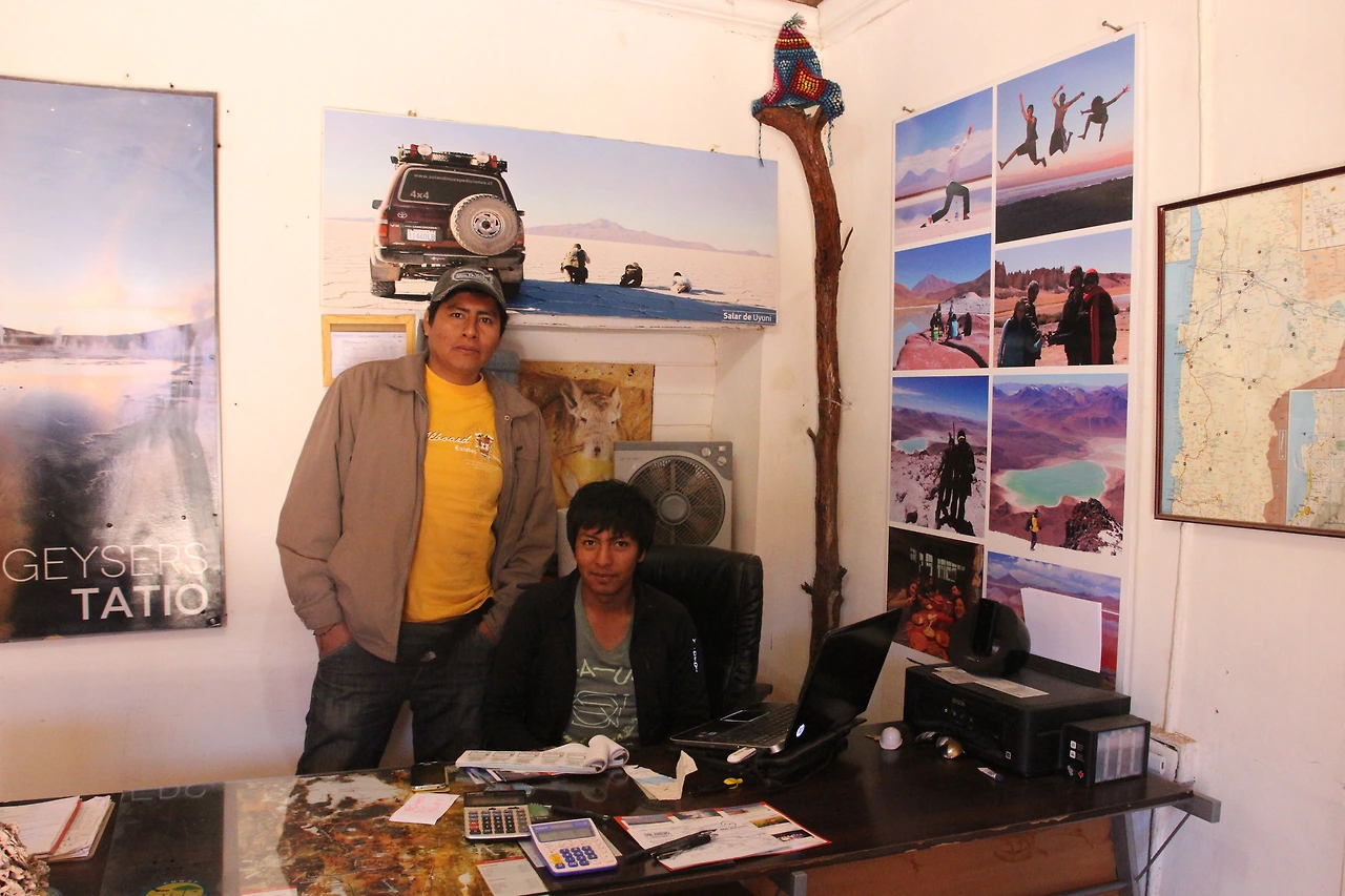 아타카마 사막에서 의외의 인연을 만났다. 다름 아닌 우리 나이 또래의 가이드 2명. 사실 아타카마에는 사막투어인 달의 계곡 투어밖에 없는 줄 알았다. 그런데 사막 속 거대한 석상을 볼 수 있는 투어를 비롯해 플라멩코 호수 투어 등 여러 가지가 있다. 일부 외국인들은 아타카마에 장기간 머무르면서 투어를 전부 즐긴다고 한다. 우리는 3개를 선택했다. 달의 계곡 투어(valle de la luna)와 간헌철 투어 (geysers del tatio), 별 투어 (tour astronomico). 투어를 예약하기 위해 여행사 서너 군데를 들렀다. 꼼꼼히 일정과 가격을 체크했다. 그런데 한 군데에서 우리한테 솔깃한 말을 꺼냈다.