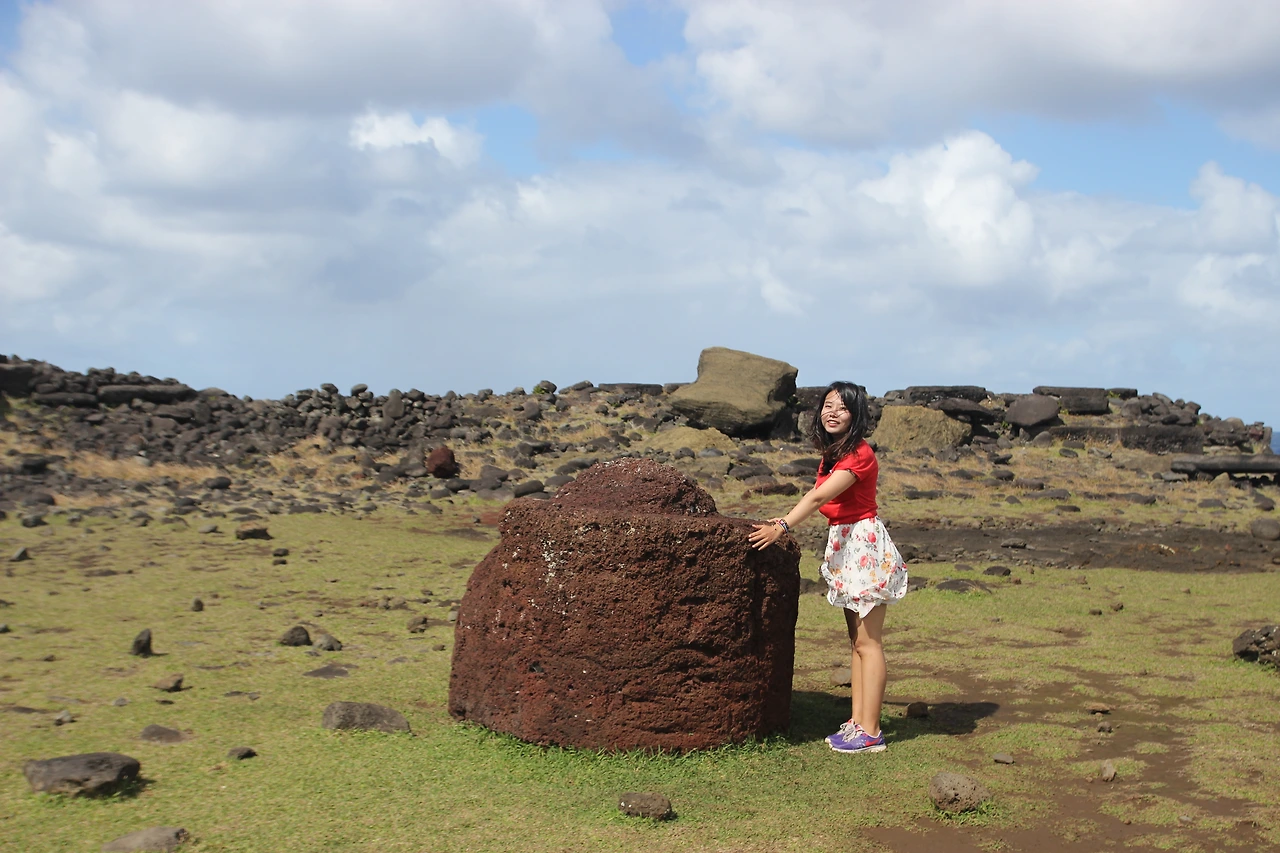 모아이를 만드는 작업장이 '라노 라라쿠'라면 모아이 모자 푸카오를 만드는 곳은 '푸나 파우(Puna Pau)'라는 곳이다. 모아이 석상 머리를 장식한 왕관을 만들기 위해 사용된 붉은 돌을 채석하던 곳이다. 언덕 위로 올라가면 푸카오들이 널려 있는 걸 볼 수 있다. 이곳의 화산석을 이용해 빨간 모자를 만들었다. 이 거대한 모아이 석상에 어떻게 모자를 씌웠을까. 첫째는 모자를 처음부터 씌워서 일으켜 세우는 방법, 둘째는 모아이를 세운 후, 모자를 씌우는 방법이라고 한다.