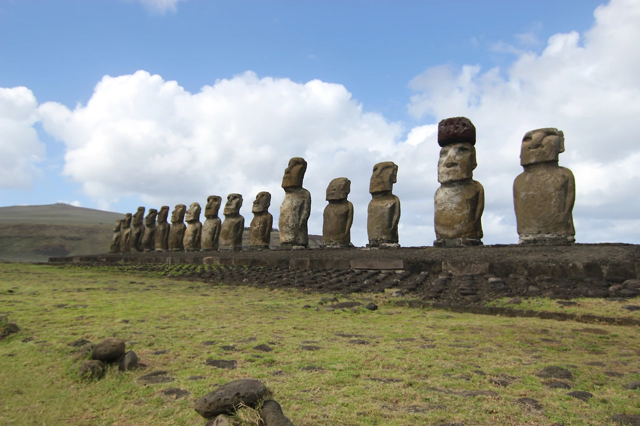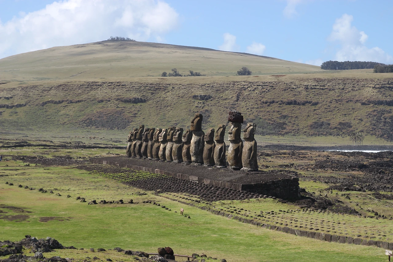 "TV 다큐멘터리에서 많이 본 15구의 모아이 석상은 사실 복원된 거예요.