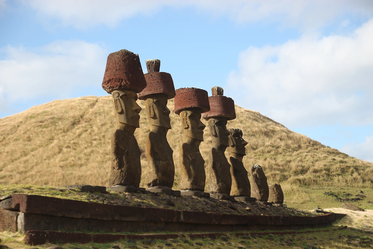 아나케나 해변에서는 '아우 나우나우(Ahu nau nau)'를 만날 수 있다. 모자를 쓴 모아이 석상 5구. 모아이 모자인 '푸카오(Pukao)'를 4개의 석상이나 쓰고 있다. 푸카오를 쓰고 있는 모자는 찾기 쉽지 않은데, 그래서 더 인기다.
